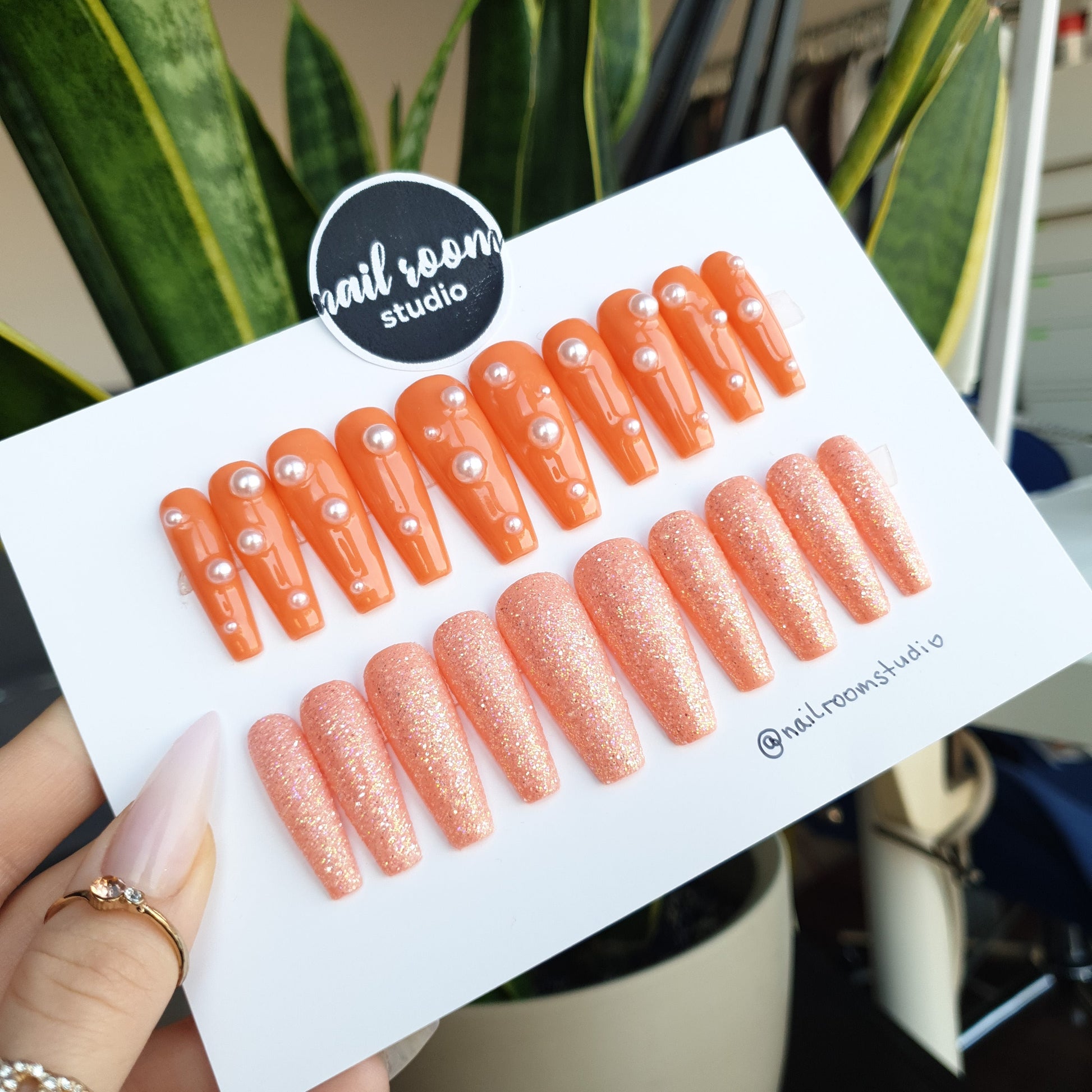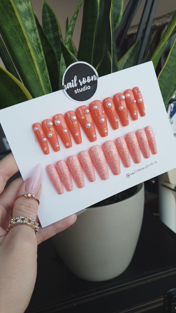 MADE TO ORDER nails: "Bloom Pearl" / "Shimmer Peach"